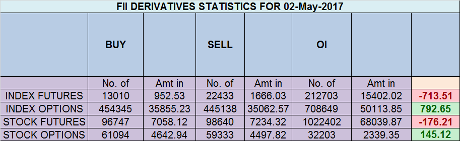 - FII’s sold 9.4 K contract of Index Future worth 713 cores ,9.1 K Long contract were liquidated by FII’s and 313 Short contracts were added by FII’s. Net Open Interest increased by 8.7 K contract, so rise in market was used by FII’s to exit long and enter short in Index futures. The Secret to Trading Success