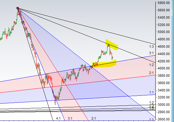 As Discussed in Last Analysis Now for coming week bears will get active if unable to close above 4430 for a move back to 4323/4250.