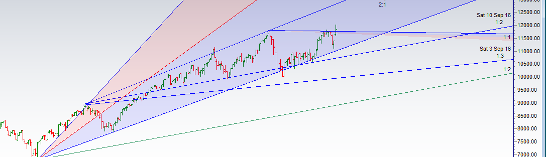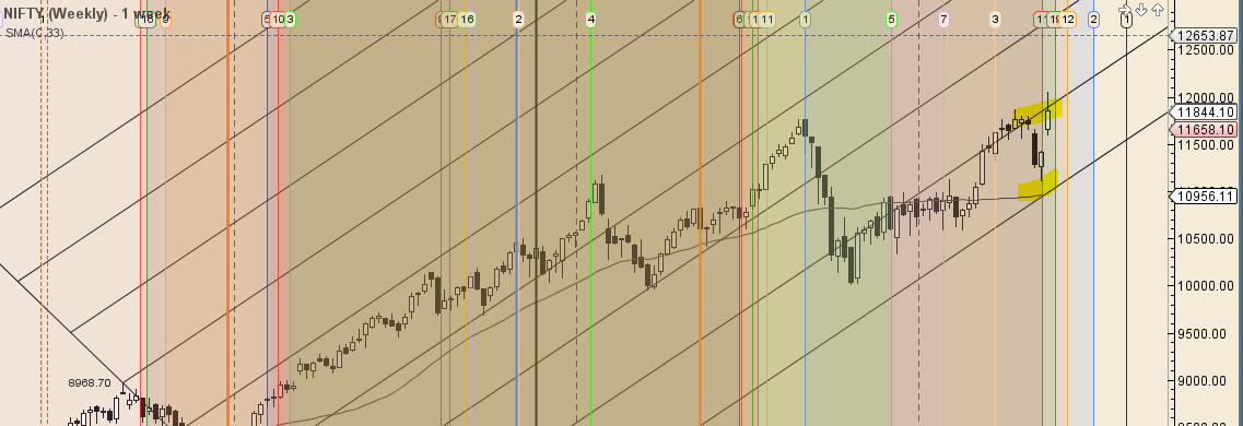 Break out of Gann Angle suggesting higher level coming towards 121100/12300 till we are holding 11614.