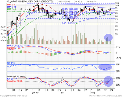 GMDC 89-90 will provide good support between 89-90 levesl where we have 61.8% Retracement and 5 EMA also Placed OS watch out this levels for extremly short term view.