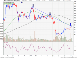 Aban Offshore is near its long term trendline and qualifies for a short term buy if it is able to break the trendline resistance of 915 on upside.Volumes are on higher side and RSI indicator showing strength which is trading abovr 50