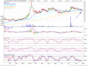 Clutch is near its 200 DMA and can give a bounce as stock is oversold Indicators Oversold.Ripe Conditions for a Relief Rally