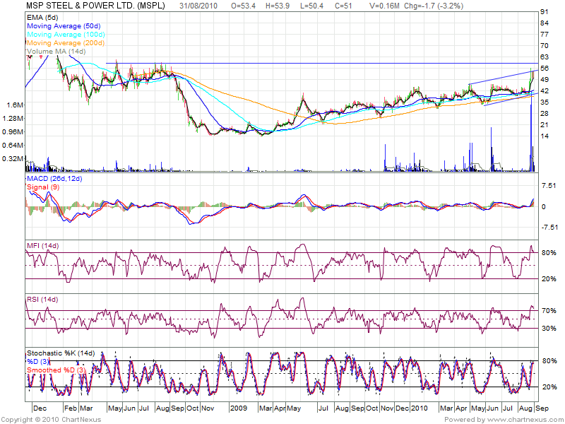 MSP Steel and Power I recommended this Stock at 48 levels and stock gave a move till 56.Which is giving almost 15% kind od returns.
