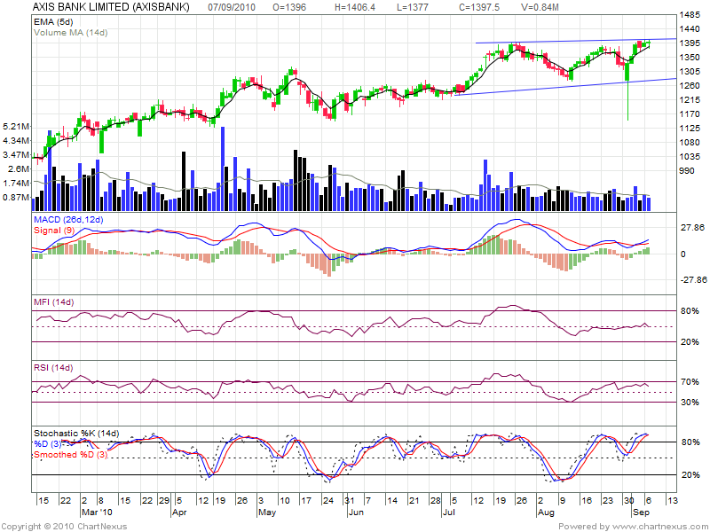 AXIS is moving in a channel and currently is moving on its upper band of channel .