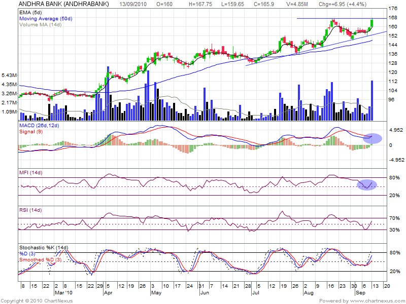 Andhra Bank is in strong uptrend as all other banks are but today it is near its Breakout Levels of Rs 167