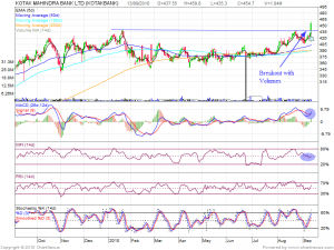 Kotak Bank after stock split has shown a breakout on daily charts.As this rally in nifty is led by Banks Kotak technically looks ripe for another run for 5%