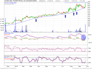 Honda Power daily chart it is taking support at 50 DMA and boucing back.Hence we are able to find the trend on the stock