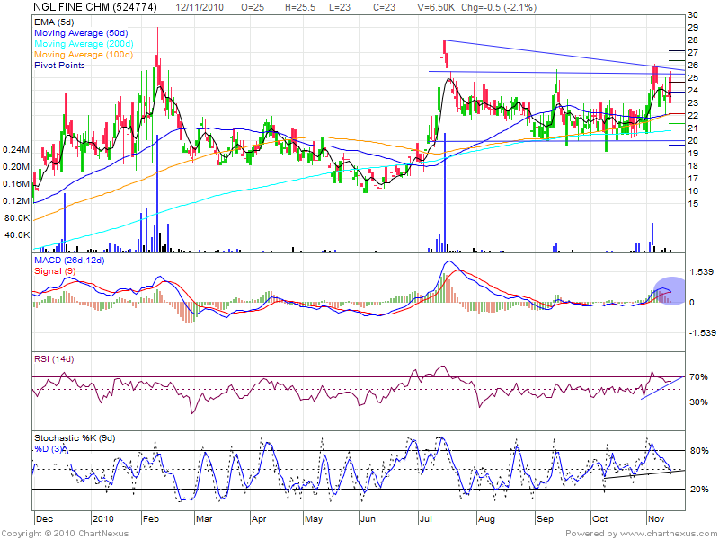 Looking at Daily Chart Resistance comes around Rs 26 and support at 50 DMA at Rs 23.