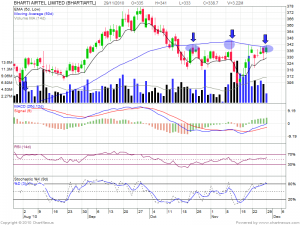 Bharti Airtel near its 50 DMA@342 which have been a significant resistane from past many trading sessions