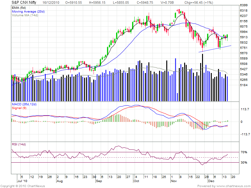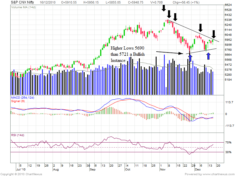 RSI is also showing positive divergence which in all is creating positive view for nifty.Close above 50 DMA is must for furthur upmove in coming 2 weeks.