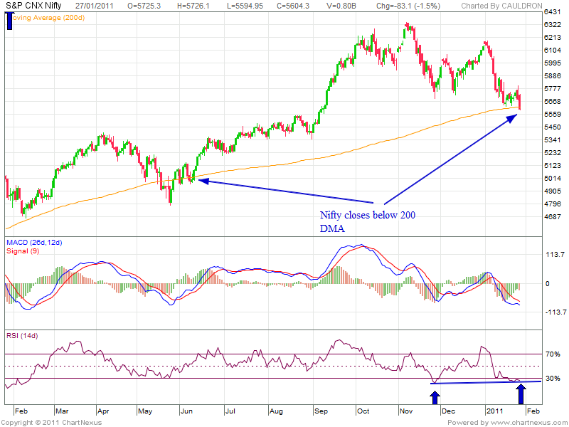 Nifty broke 200 DMA FIRST TIME 26 mAY 2010.Moved below it for few trading sessions and than gave a fierce bounce.