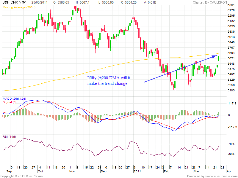 Nifty Daily Chart is on a Crucial juncture hovering around 200 DMA will the Bulls have power to move the Index over 200 DMA@5684.