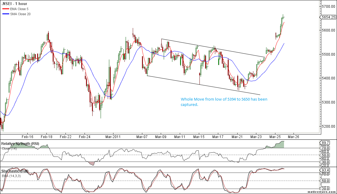On Weekly Chart Nifty is moving in a channel as shown above. If nifty is able to break this channel on upside for coming week we should move back to 5800-5900 range.