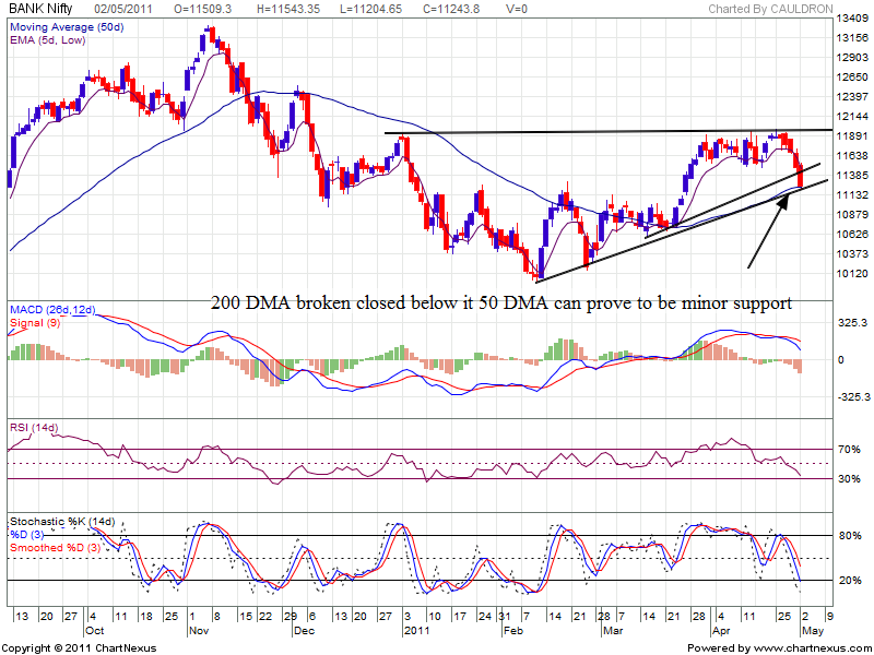 As seen from Daily Chart BN has broken its crucial 200 DMA @11387 and now taking support 50 SMA @11256.
