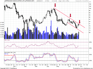 JP associate has been trading in a Parallel channel as shown in above chart and forming a formation of Lower Highs which is a bearish indication