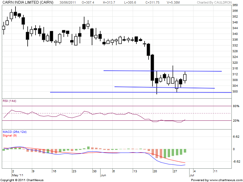Cairn is trading in range of 302-314 and Indian government passing the deal today can give booster to stock on upside and move above its trading range.