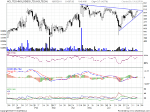 HCL tech is forming a triangle breakout formation,Volumes on lower end.