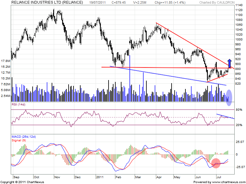 RIL charts are showing a classical example of Support becoming Resistance. If the above chart is seen closely 883 was the breakdown point and this is the point stock is facing resistance now @883