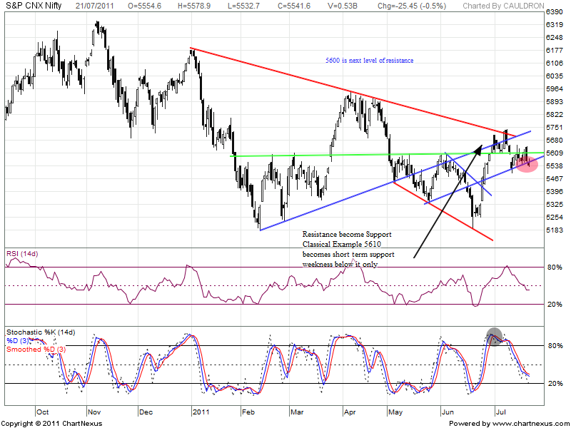 Break of above level can eventually drag Nifty to sub 5400 levels.