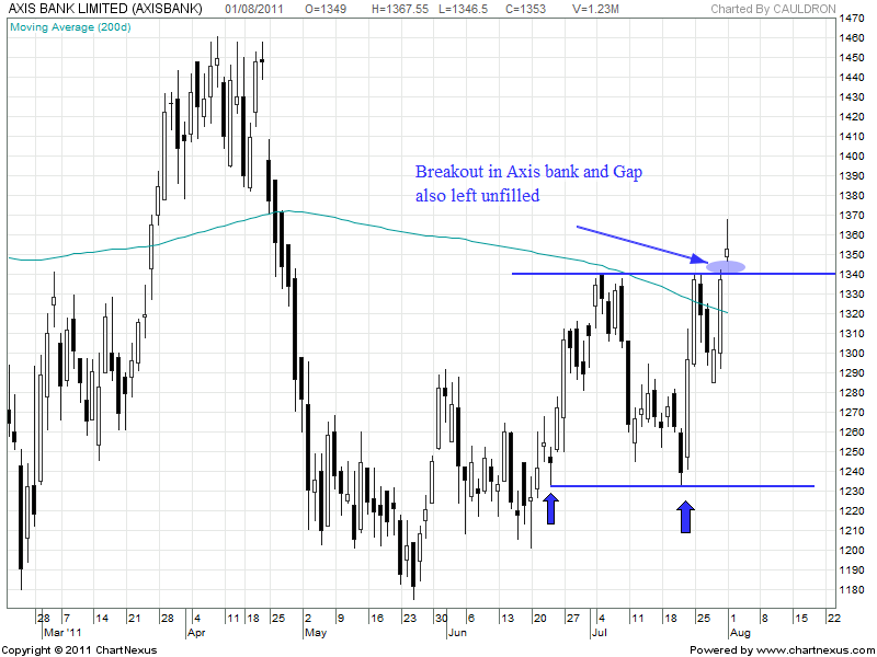 Axis Bank made a blockbuster moves after its excellent earnings declared. Stock was able to cross its 200 DMA and close over its for 2 days in a row which is positive for the stock. Stock also gave breakout around 1340 levels and closed above it.