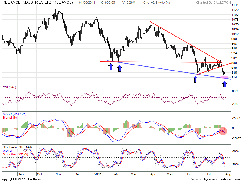 Reliance the Poster Boy has been under bear hammering from past few days. Stock is breaking its important support levels inspite many positive triggers of BP deal.