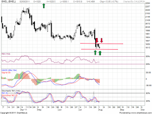After the fall BHEL is consolidating in a range taking a breather in 1856-1800 range.Break of either 1800 will take the stock lower and Break of 1856 will take the stock higher where the breakdown occurred at 1890 levels.
