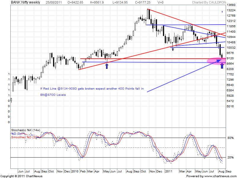 Bank Nifty on Daily Charts has been falling from past 11 Sessions a Straight fall from 10500 -9100 Level a Fall of almost 1400 Points.