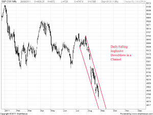 ON Daily chart we are in IMPULSIVE down move trading in channel and making lower lows. No Bottoming Formation is seen as such.
