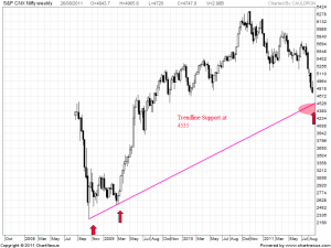 On Weekly chart a Simple trendline will show support at 4539 which is next level of support if 4675 gets broken also. Market are Highly Oversold but trending market can remaing oversold or overbought for prolonged period of time.