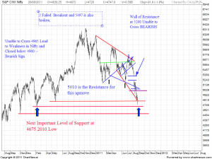 As seen from Daily chart the next Legitimate support comes at 4675 which is 2010 low. For Upside Support will become resistance