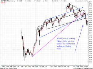 Close below 5039 will bring Nifty Weekly also in downtrend on Weekly basis and it will be SELL ON RISE below 5039.