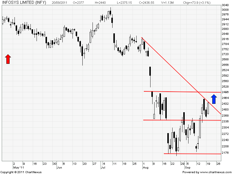 Above 2501 Violent move can take Infy back to 2524 level where there is a runaway gap.