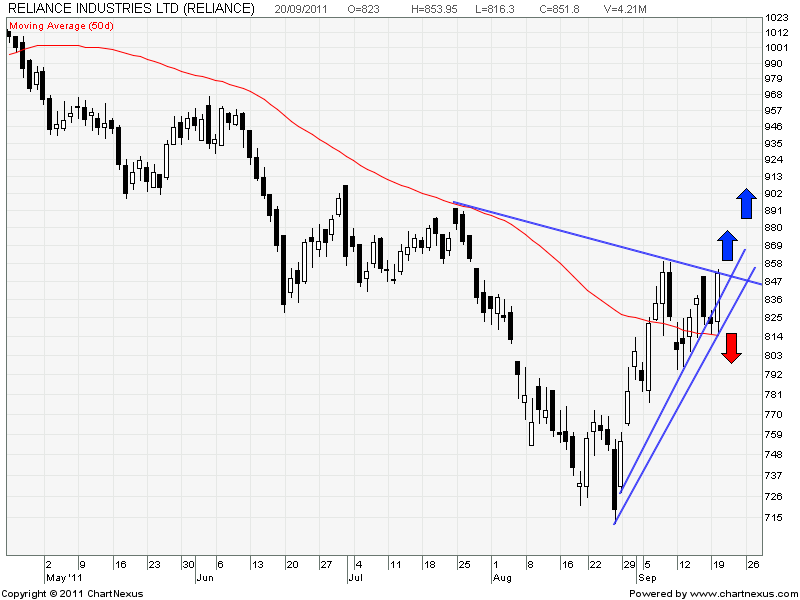 Looking at Daily chart above 854 levels stock will do its breakout from down trending trend line. Failure of the same will lead to stock to sub 800 levels.