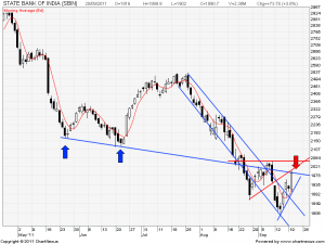 SBI is again near its resistance of down trending line of 2000 which if not broken than again stock will again go below 2000 its a vertical trend line the stock is rising on.