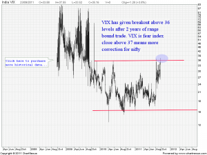 VIX broke the 2 year range of 36 and is trading above that levels. Above 37 VIX will favor bears so keep a close watch on it.