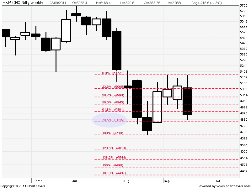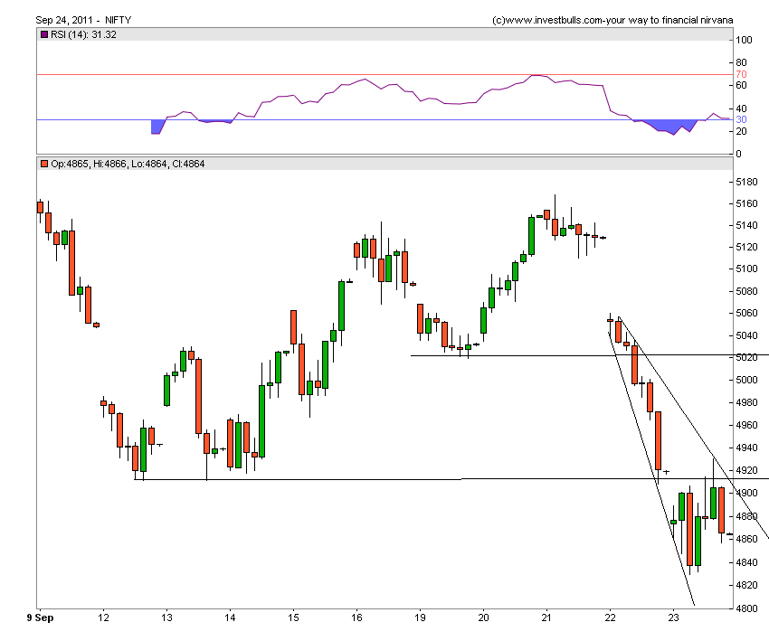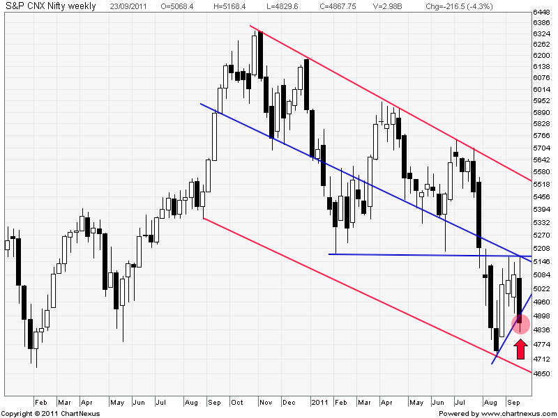 Weekly Charts i pointed on last week nifty has failed to form Higher Highs failing to close above 5169 this week we saw the effect with Nifty closing below 4911 and finally forming Lower Lows.