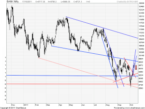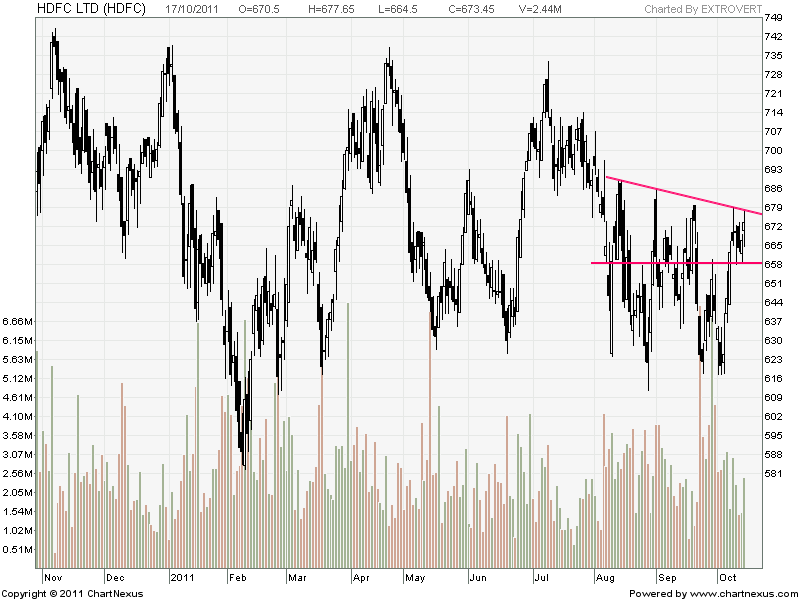 HDFC Ltd one of the strongest stock in Nifty has formed resistance at upper trend line with the formation of lower low.