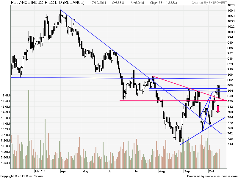 RIL corrected yesterday back of its results not meeting market expectation. Stock took support at its trendline (Marked in RED).