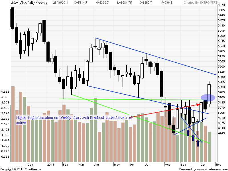 Last week was a Big Bang Diwali fireworks happening on Dalal Street. Nifty after 10 Weeks of Consolidation broke the 5169-4720 range and and After breaking the range with support of global market we are trading back to 5400 Levels.