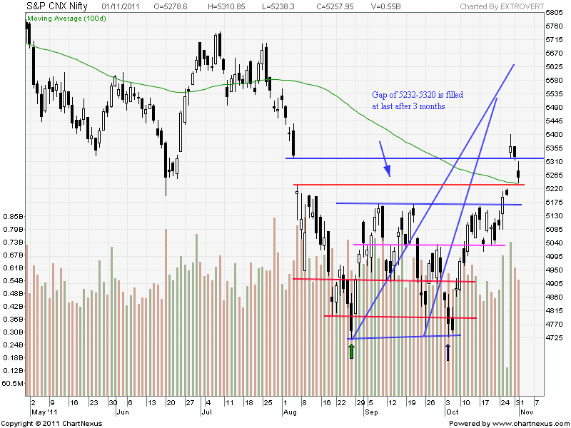 As seen from the above Chart Nifty finally filled the Gap 5235-5320 after 3 Months and took support@5038 and Bounced from the lows . Today we are likely to open Gap down near 5200.