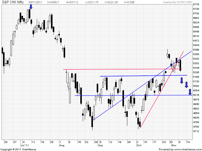 Nifty broke this levels after 13 weeks of consolidation and tomorrow being a weekly closing ,If nifty closes below 5169 it will become technically week.