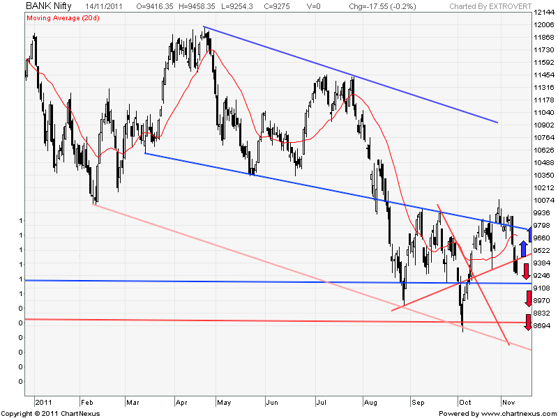Technically things looks overdone for short term and bounce can be expected in bank nifty if it start trading above 9329.