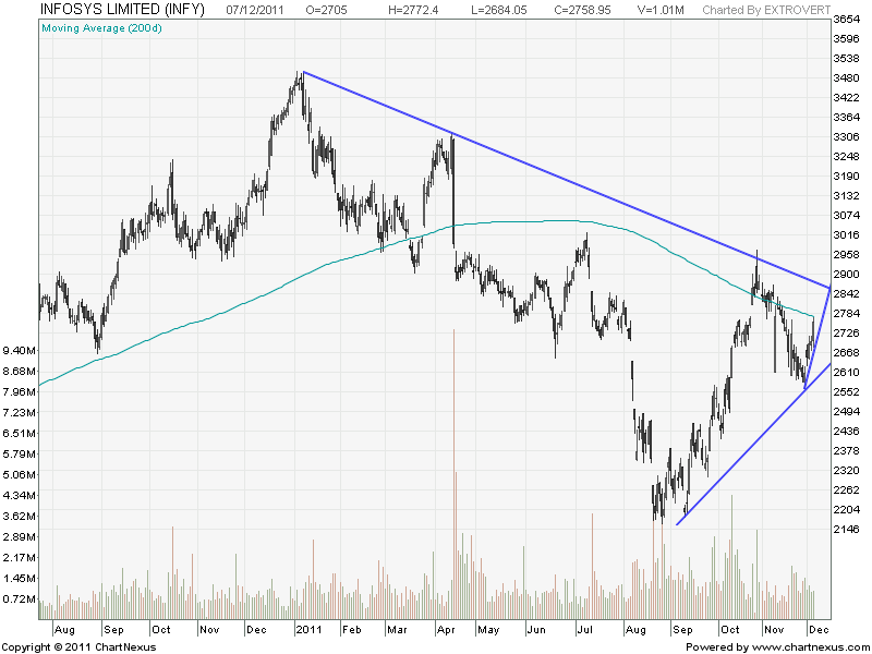 Infosys is at its crucial resistance of 200 DMA@2772.Close and trade above 2772 will take infy to upper end of trendline resistance at 2850,On Downside close below 2684 will lead to lower trendline support at 2600