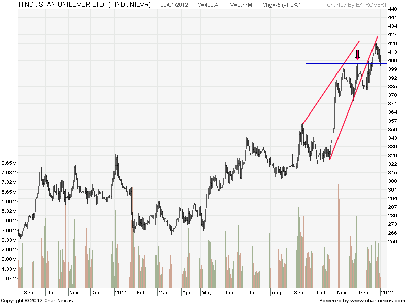 HUL one of strongest stock in Nifty 50 made life time high of 420.25 and started pulling back. Pullback in strong uptrend are healthy for another round of upmove.