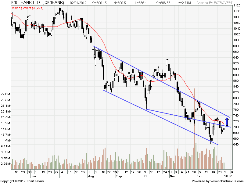 ICICI Bank is another Banking stock looking ripe for an upmove above 702. 20DMA stands at 710 above which stock will show a quick rally.