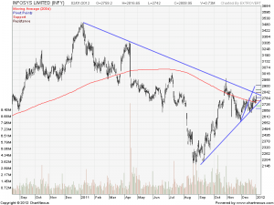 IT and FMCG are the only sectors which are holding Nifty from past 3 days. Infosys after many days of consolidation finally closed above its 200 DMA which is technically bullish for the stock.