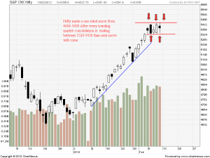 Every trending markets is followed by a Consolidation or sideways market.Now we had a rally from 15 days from 4675-5430 almost 20% rally now we had a 5 days of consolidation pattern from the range of 5320-5430. Best Strategy in consolidation market Buy near support Sell at resistance.