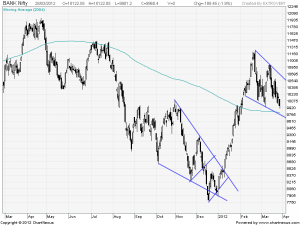Nifty made double bottom yesterday at 5171 but Bank nifty broke the previous swing low 9939 and made a new swing low of 9901.