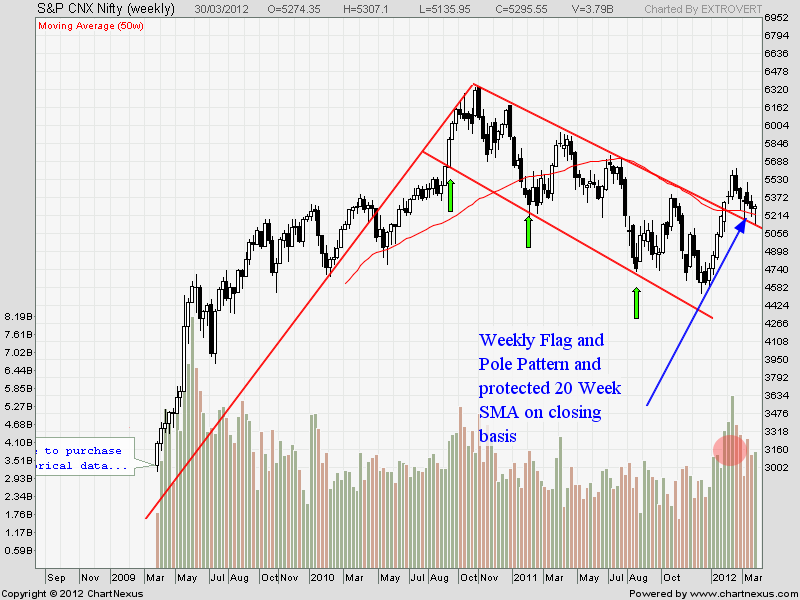 Flag and Pole pattern is still active on Weekly charts with Weekly charts closing above 20 SMA. Also