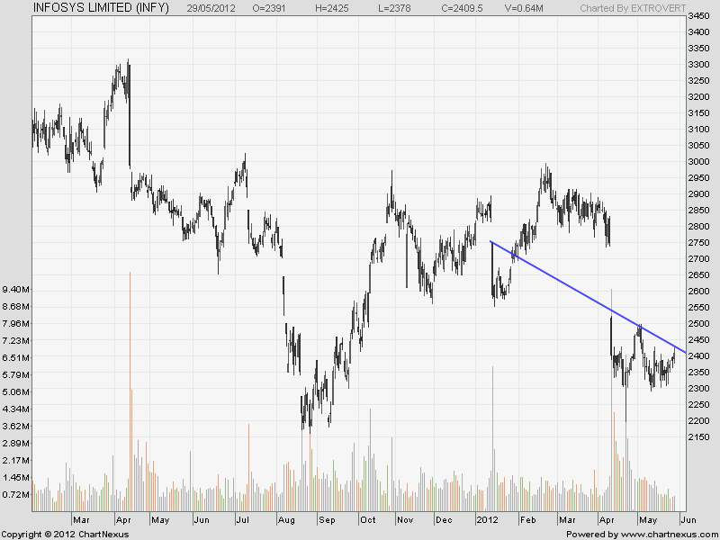 Trendline resistance at 2425,Break of same can lead the stock back to 2500 odd levels.